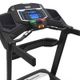 - Displej. Dva modře podsvícené LCD displeje (Dual Track™) pro neustálý přehled o tréninku. Spodní displej zobrazuje měřené hodnoty: čas / čas uběhnutí 400m okruhu, rychlost / čas potřebný k uběhnutí mi/km, tréninkovou vzdálenost / počet odběhnutých 400m okruhů během tréninku, puls a počet spálených kalorií. Zobrazuje také stupeň sklonu pásu, vybraný uživatelský profil, aktuální HR zóna a zátěžový profil zvoleného programu. Horní displej zobrazuje hodnotu tréninkového cíle (pro čas, vzdálenost nebo kalorie) a fitness skóre.