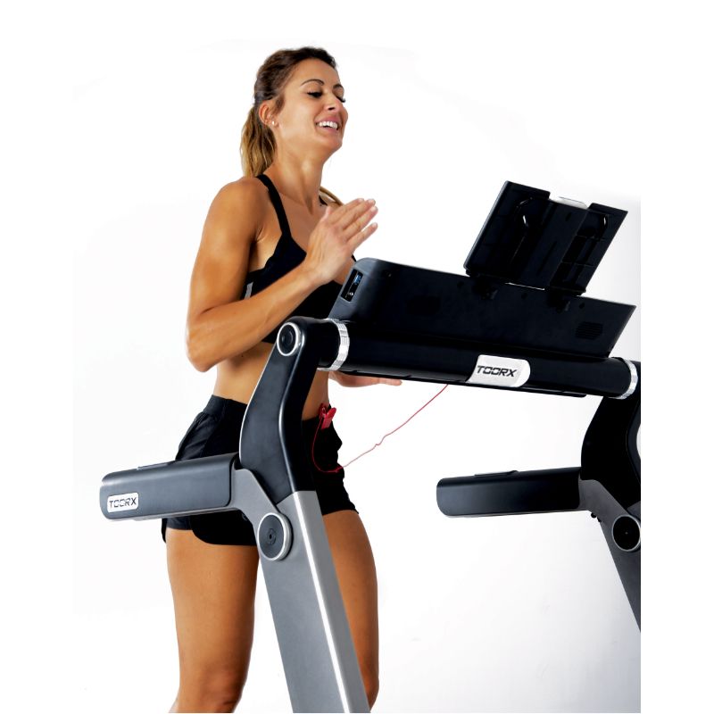 Čisté linie, elegantní pochromované detaily a nová technologická řešení běžeckého pásu TOORX MIRAGE C80 jen zvyšují přitažlivost tohoto výkonného modelu. Trenažér je ideální volbou pro všechny uživatele, kteří preferují pravidelný kondiční trénink v prostředí domácí posilovny. Prostorná běžecká plocha o rozměrech 138 x 48 cm s kvalitním odpružením umožňuje běh rychlostí až 20 km/h a s maximálním sklonem 12%. Pět bíle podsvícených LED displejů přehledně informuje o všech měřených hodnotách. K dispozici je celkem 34 tréninkových programů, včetně 4 HRC módů a 4 uživatelsky konfigurovatelných profilů. Velkou výhodou je možnost složení pásu do kompaktních rozměrů – po sklopení se pás pohodlně vejde například pod gauč nebo za skříň.