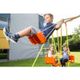 Houpačková sestava SWING 3 dětem jen tak nezevšední. Umožňuje totiž vzájemné kombinování až čtyř různých prvků sestavy: jednoduchou houpačku lze rychle a snadno vyměnit za talířovou houpačku Swing nebo dětskou bezpečnostní sedačku se zajištěním. Závěsnou gondolu lze také nahradit jednoduchou houpačkou. Dělitelná ocelová konstrukce spolu s jednoduchou houpačkou a závěsnou gondolou tvoří kompaktní sadu, kterou lze poskládat do praktického balení. Zahrada se tak rázem promění v hřiště plné dobrodružství a zábavy.