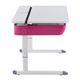 - dvě samostatné pracovní plochy – pevná zadní část nabízí prostor na odložení věcí, přední část pracovní plochy s nastavitelným sklonem pro pohodlnější psaní a kreslení