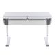 rostoucí psací stůl pro děti, nastavitelný sklon pracovní desky, výsuvná zásuvka, multifunkční pravítko, integrovaný box na kabely, transportní kolečka, deska bílá – šedá, vyroben v Německu
