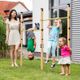 Na dvojité hrazdě si spolu mohou hrát dvě děti najednou. Samostatná ocelová konstrukce dvojhrazdy nabízí dětem zdravý pohyb a zábavu v bezpečném prostředí domácího hřiště nebo zahrady. Venkovní dvojhrazdu je možno výškově nastavit do čtyř poloh. Další variantou je jednoduchá hrazda pro jedno dítě.