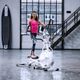 - Stabilní konstrukce s praktickým mechanismem sklopení. Ocelový rám umožňuje zatížení 150 kg, díky výškovému vyrovnání nerovností podlahy je konstrukce velmi stabilní. Po tréninku lze trenažér snadno sklopit pro úsporu místa. Pomocí pneumatické pružiny se jednoduše zvedne pojezdová část a přiklopí se k přední části trenažéru. Pevná kolečka pak zajišťují pohodlnou manipulaci a snadné přesouvání po místnosti.