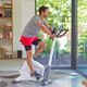 - Vybavení trenažéru. Komfortní sedlo Basic Foam s možností výškového a horizontálního posuvu (s možností výměny), ergonomická řídítka s variabilním úchopem a výškovou nastavitelností, samonastavovací řeménkové pedály, kolečka pro manipulaci (umístěná vpředu), mechanismus vyrovnávání nerovností podlahy (vzadu), stojánek na smartphone nebo tablet.