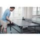 - Součástí stolu je síťka s možností výškového nastavení a s automatickým napínáním, kterou není nutné před sklopením hracích ploch demontovat.