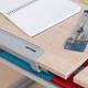 - dělená pracovní plocha - jedna třetina je pevně přimontována ve vodorovné poloze, dvě třetiny plochy jsou tvořeny sklopnou deskou pro pohodlnější psaní a kreslení