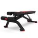univerzální posilovací lavice, sklopitelná, polohovatelná opěrka zad i sedák, možnost negativního sklonu, transportní kolečka, hmotnost 27 kg, celková nosnost 272 kg