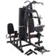 multifunkční posilovací věž, 3 tréninková stanoviště, horní i spodní kladka, bicepsová opěrka, bradla, hrazda, boční lavička, Leg Press, centrální kryté závaží 72 kg, nosnost 120 kg, rozměry po sestavení: 218 x 280 x 210 cm