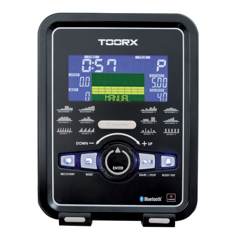 Atraktivní recumbent bike TOORX BRX R 300 ERGO z řady fitness trenažérů TOORX Chrono Line je vhodný pro široké spektrum uživatelů. Díky velmi jednoduché nastavitelnosti (sedla a pedálů), přehlednému LCD displeji a nízkému nástupu se dokonale přizpůsobí individuálním potřebám trénujícího. Trenažér je vybaven elektronicky ovládaným indukčním brzdným systémem se 32 stupni zátěže, kterou je možné snadno nastavit přímo na konzoli tréninkového počítače. K dispozici je také bohatá nabídka motivačních programů vč. HRC módů a funkcí Body Fat Test a Recovery. Recumbent bike lze navíc pomocí rozhraní Bluetooth propojit s novou tréninkovou aplikací iConsole (v ceně). Můžete si tak vybrat z nekonečného množství tréninkových tras, vytvořit si tréninkový plán nebo sdílet své výsledky prostřednictvím sociálních médií.