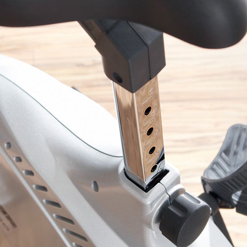 - Vybavení trenažéru. Komfortní gelové sedlo s možností výškového a horizontálního posuvu, ergonomická 3D řidítka s možností nastavení sklonu v rozmezí 360 stupňů, kolečka pro manipulaci (umístěná vpředu), mechanismus vyrovnávání nerovností podlahy (vzadu).