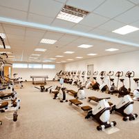 Výstavní místnost je rozdělena na tematicky zaměřené sekce. Největší plochu zabírají cardio trenažéry nejrůznějšího provedení: od těch nejjednodušších až po rotopedy s programy, sofistikované ergometry nebo dlouhá řada crossových trenažérů. Pro fanoušky cyklistiky máme přichystaný ergocyclingový koutek s velkou obrazovkou, kde si mohou vyzkoušet výšlap do libovolného kopce kdekoli na světě. K vyzkoušení jsou připraveny také běžecké pásy všech velikostí spolu s flotilou veslovacích trenažérů a stepperů. Velký výběr nabízí taktéž silová zóna. Od jednoúčelových lavic, přes multifunkční posilovací lavice až po celou řadu posilovacích věží. V showroomu samozřejmě nechybí ani činkové kotouče, činkové tyče a jiné fitness doplňky.