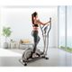 magnetický trenažér, elektronické ovládání zátěže, 23 programů, 16 stupňů zátěže, délka kroku 38 cm, 14 kg setrvačník, nosnost 130 kg