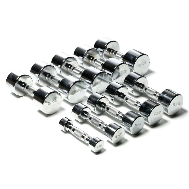 sada jednoručních činek 1 -10 kg, kvalitní chromované provedení, rukojeť s protiskluzovým vroubkováním