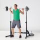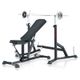 - Kombinace posilovací lavice se stojanem na činkovou tyč se závažím umožňuje individuální a pestrý trénink všech svalů