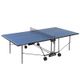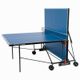 venkovní stůl, sklopitelný, modrá hrací plocha, 4 zdvojená kolečka otočná o 360°, síťka součástí stolu, držák na pálky a míčky, možnost hry jednoho hráče, hmotnost 50 kg, modrá – černá