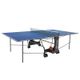 vnitřní stůl, sklopitelný, zelená hrací plocha, 4 zdvojená transportní kolečka, 2 otočná o 360°, síťka součástí stolu, držák na pálky a míčky, bezpečný mechanismus sklopení stolu, hmotnost 69 kg, modrá – černá